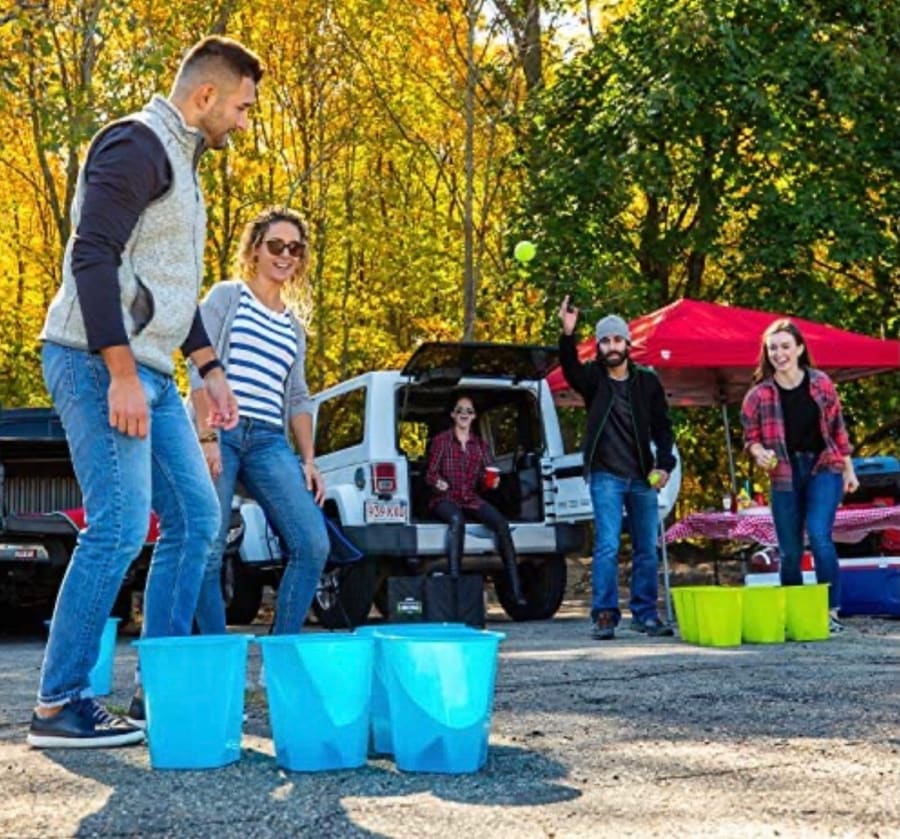 Set-up is quick and straightforward. Each bucket is filled roughly a quarter full with water to give it weight and stability. Once placed in formation, players take turns tossing tennis balls, aiming to land them in their opponent’s buckets. Any bucket that has a ball land inside it is knocked out of play. The first player or team to clear all of the opposing buckets wins.