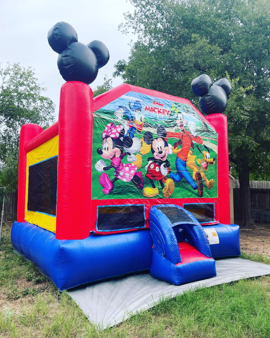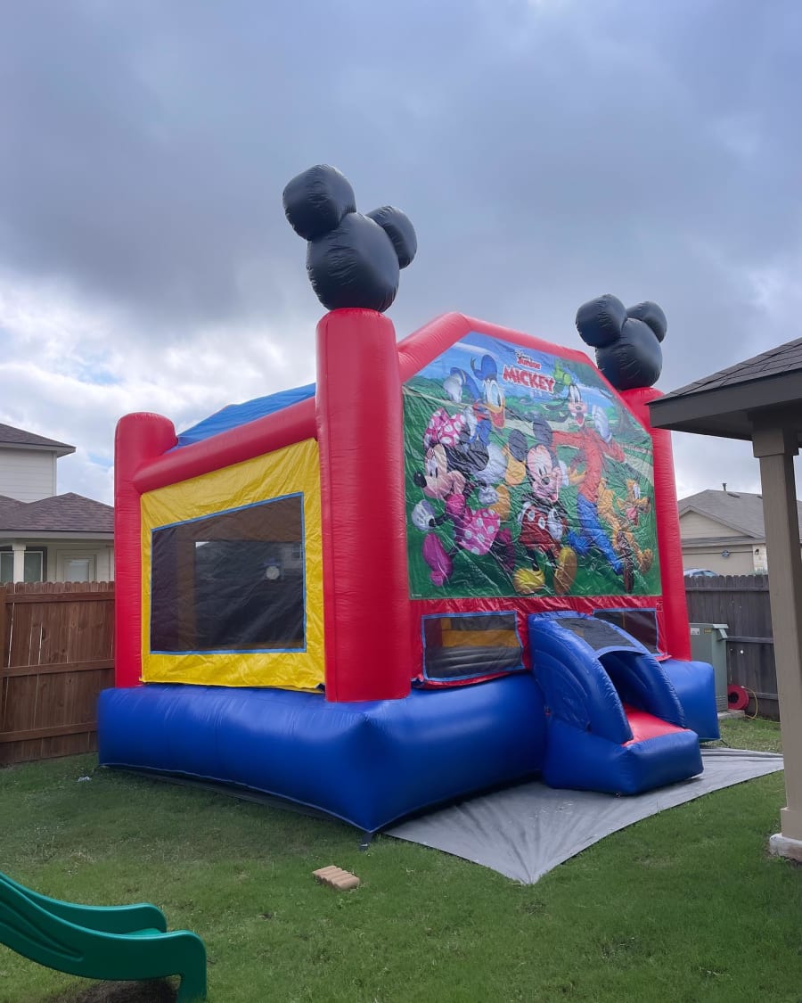 Themed bounce houses are usually chosen when the inflatable is meant to anchor the celebration visually. Character units such as Mickey & Friends, Disney Princess, and Marvel Avengers often replace the need for extra decorations.
