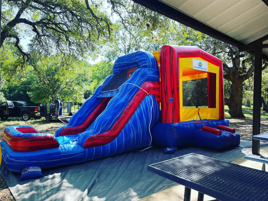 Slides such as the 18 FT Blue Typhoon and the 18 FT Texas Giant are frequently booked alongside bounce houses for outdoor events with enough room for safe access. For cooler weather or indoor venues, dry options from Giant Dry Slides provide a practical alternative.