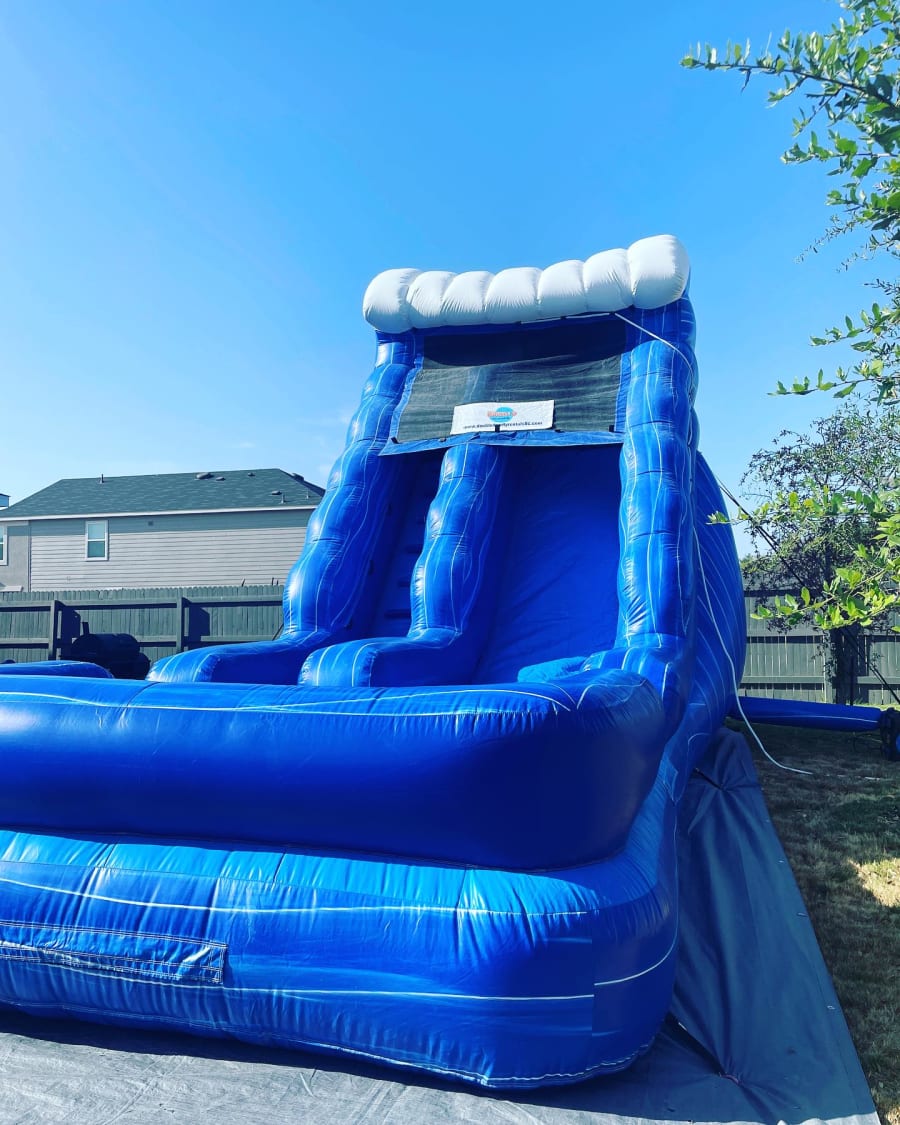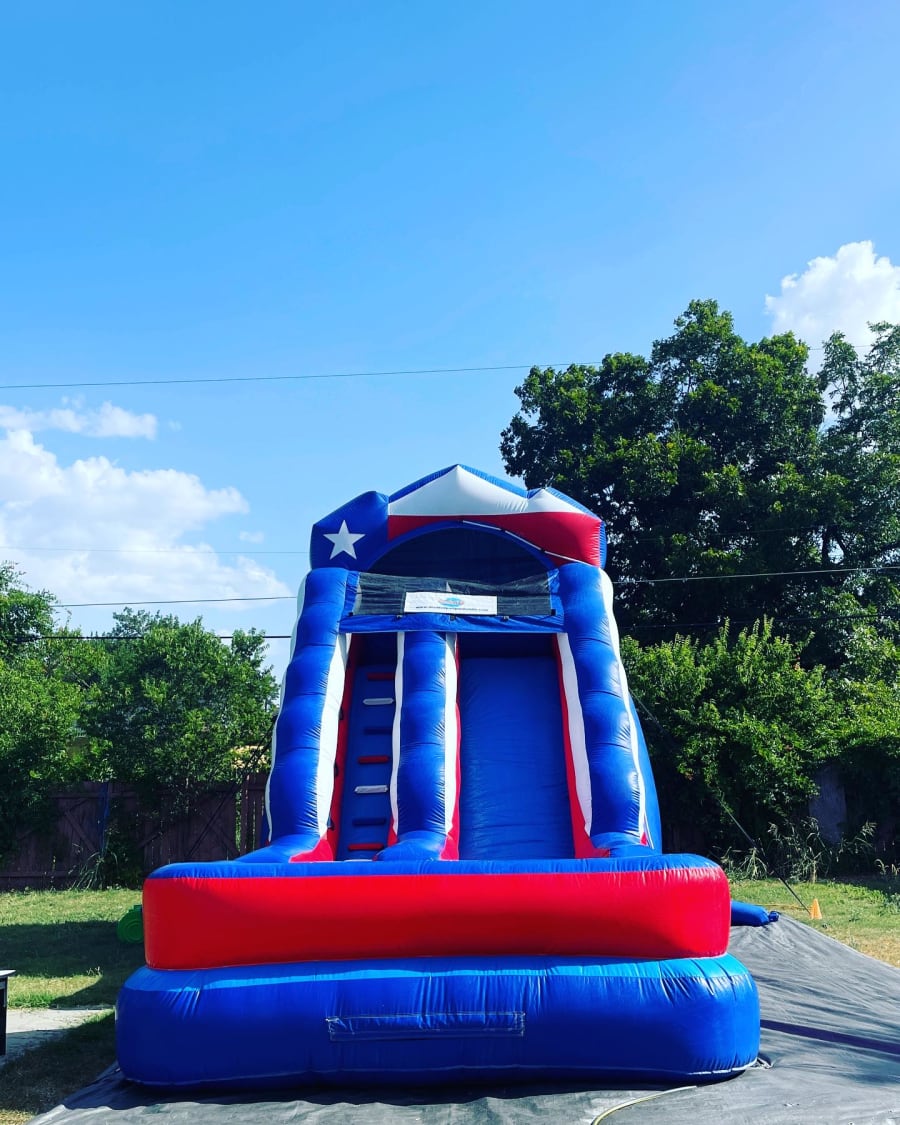 Two slides that are frequently booked for Balcones Heights events are the 18 FT Blue Typhoon and the 18 FT Texas Giant. Both offer a straightforward climb-and-slide layout that keeps use predictable and steady throughout the day.
